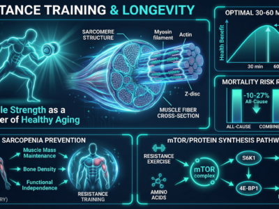 レジスタンストレーニングは、全死亡リスクを10-27%低下させ、有酸素運動との組...